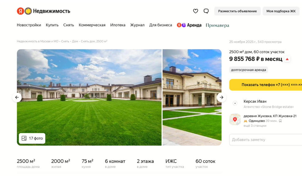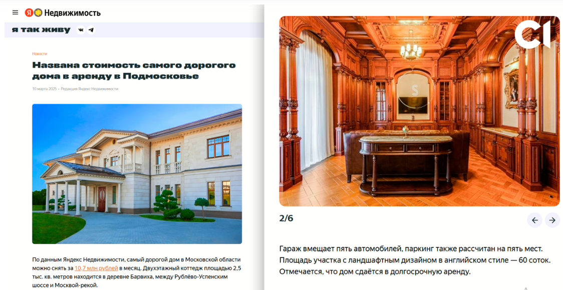 В марте 2025 года "Яндекс.Недвижимость" называл этот объект самым дорогим для аренды в Московской области.