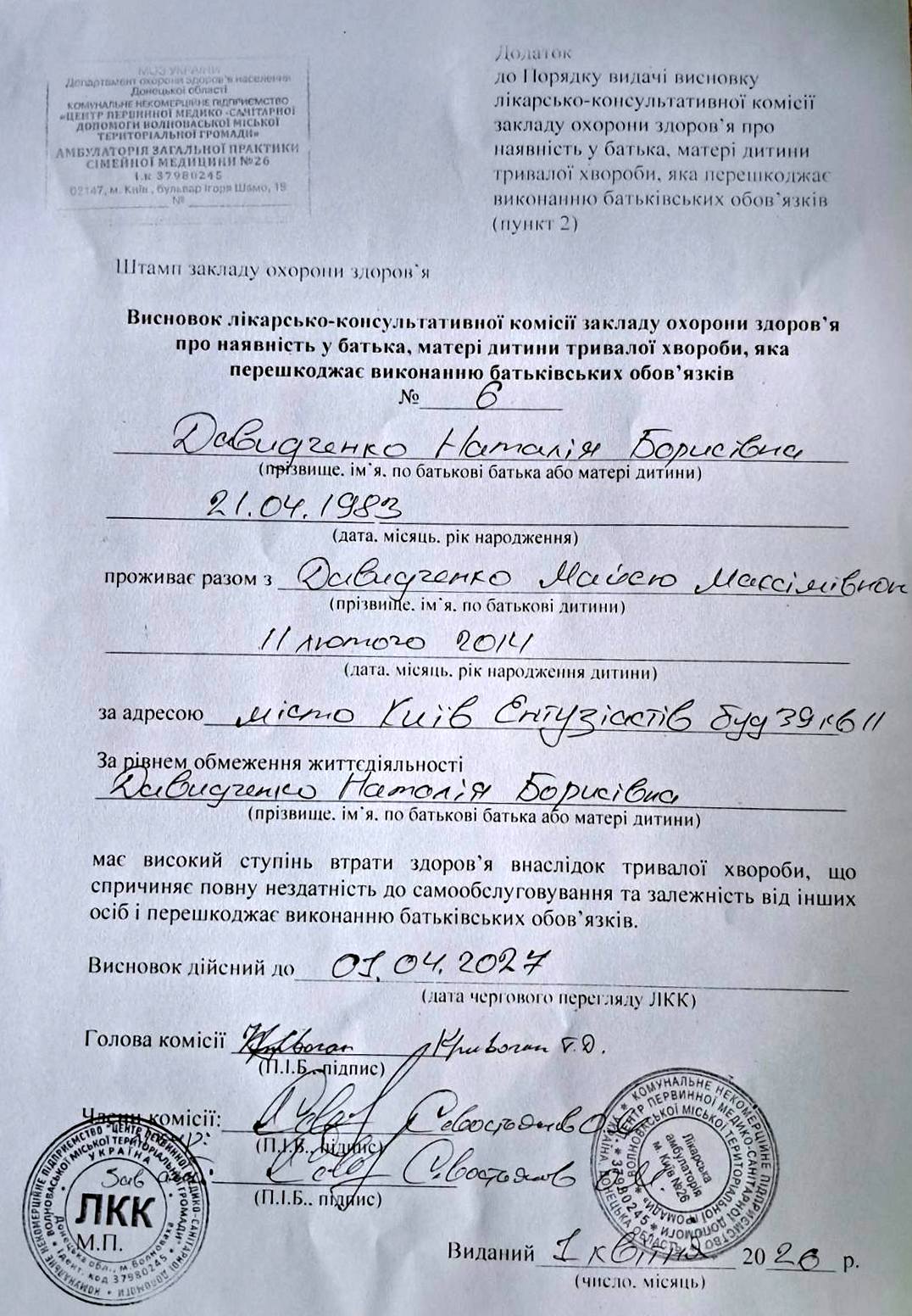 Заключение врачебной комиссии