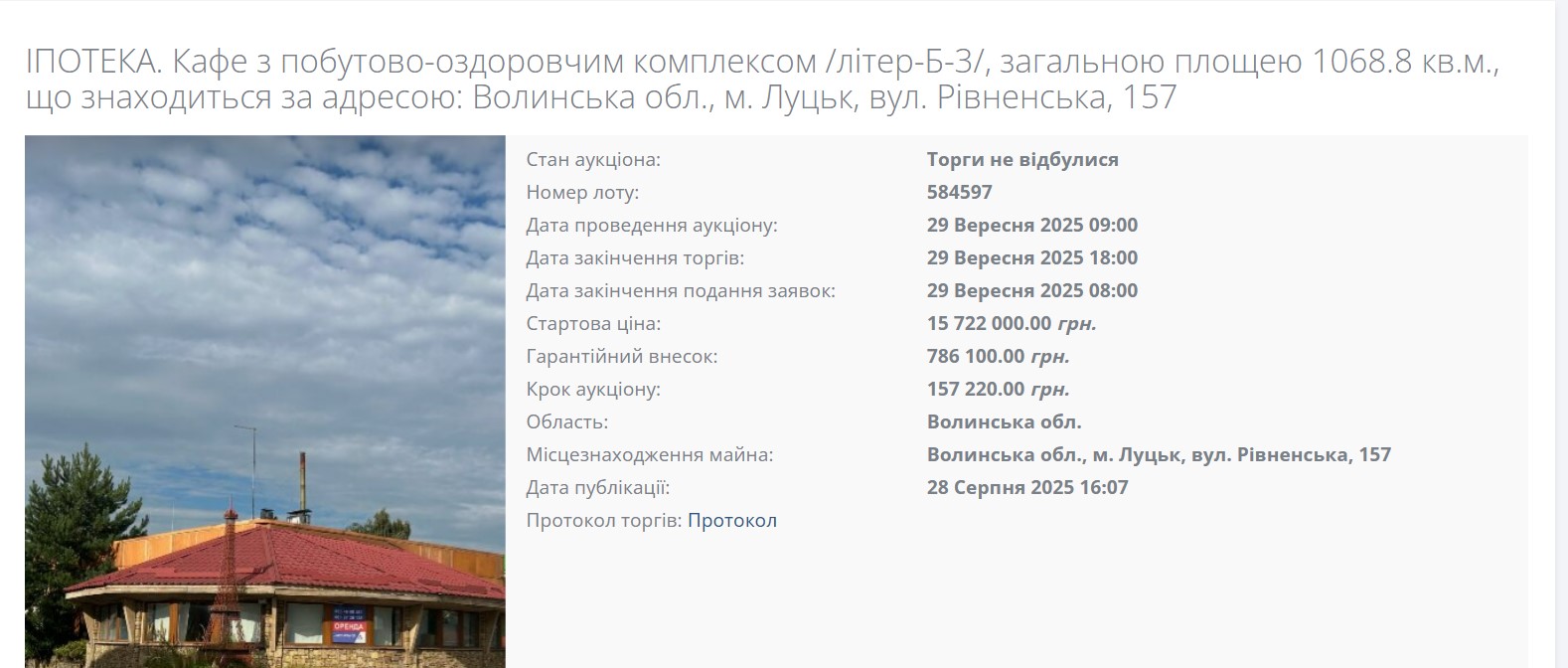 За 2024 год женщина заработала 7,5 млн грн, а за 2025-й – уже 9,2 млн грн. Кроме того, 24 февраля 2026 года на нее оформили право собственности на кафе с оздоровительным комплексом площадью 1068 кв. м в Луцке. В прошлом году этот объект на аукционе пытались продать за 15,7 млн грн. В этом году торги прошли повторно, и имущество досталось жене чиновника БЭБ уже за 9,4 млн грн. В реестре НАПК сообщений о покупке этого объекта нет.