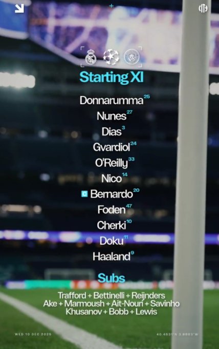 В среду, 10 декабря, испанский "Реал" и английский "Манчестер Сити" сыграли поединок 6-го тура основного этапа Лиги чемпионов УЕФА сезона 2025/26. Дерби этих команд уже стало классическим в современную эру главного еврокубка.