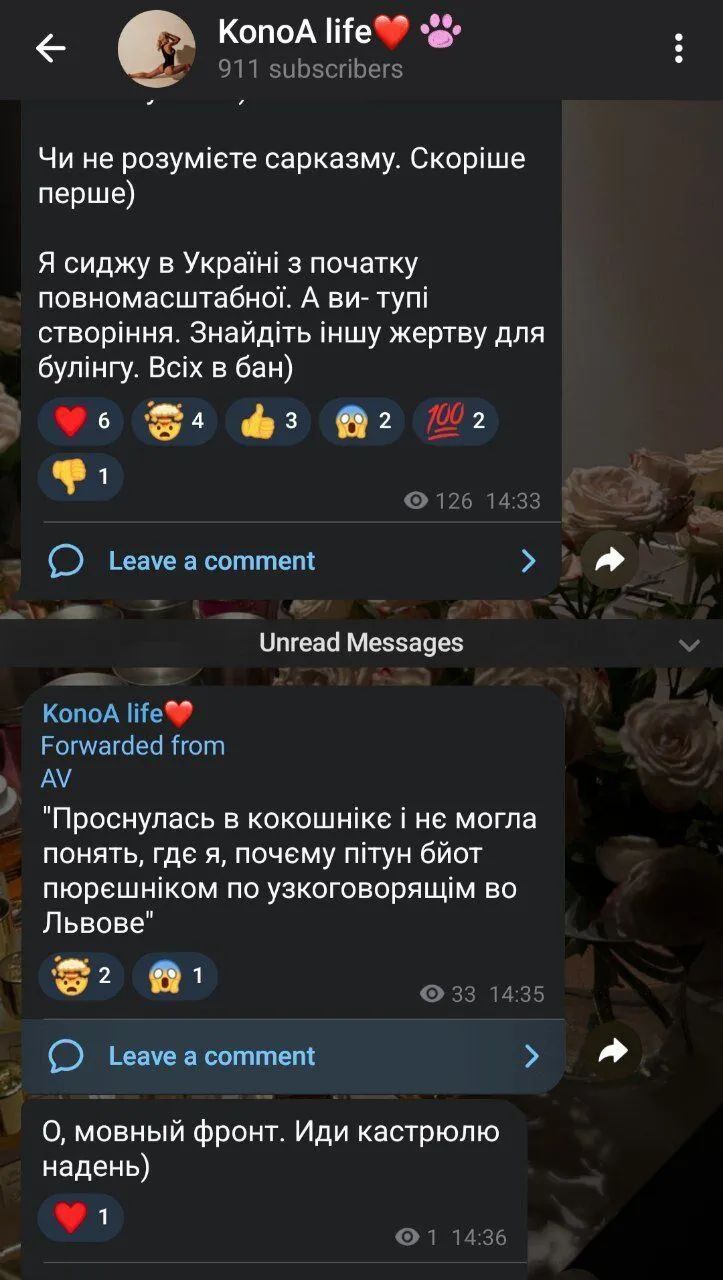 Эта публикация завирусилась в сети. Один из пользователей высмеял Анастасию "переделав" ее слова. Другой раскритиковал ее за использование русского языка. В итоге девушка перешла на украинский, однако вспылила, и послала "мовный фронт надевать кастрюли".