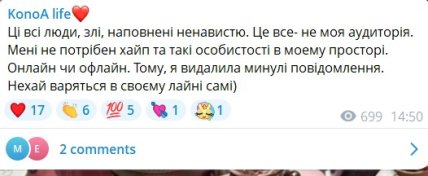 Девушку раскритиковали и за содержимое публикации и за то, что она была написана на русском языке. Об этом сообщает Obozrevatel.