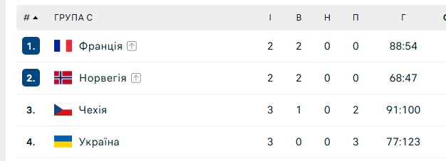Турнирное положение команд в группе С на Евро-2026 по гандболу