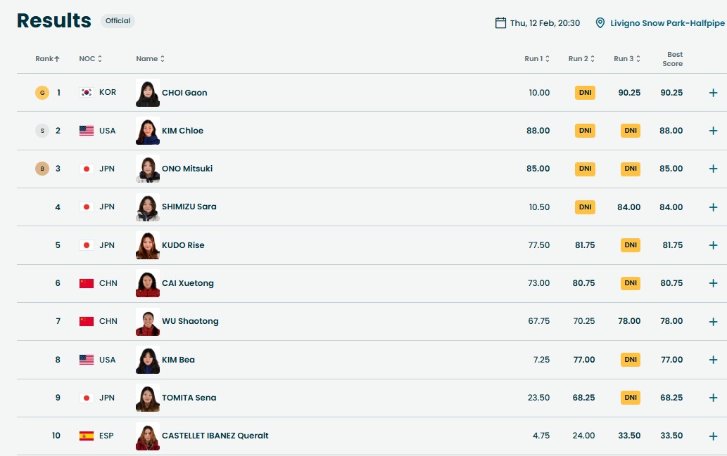 - Он Чхои Ка (Южная Корея), Хлоя Ким (США), Мицуки Оно (Япония).