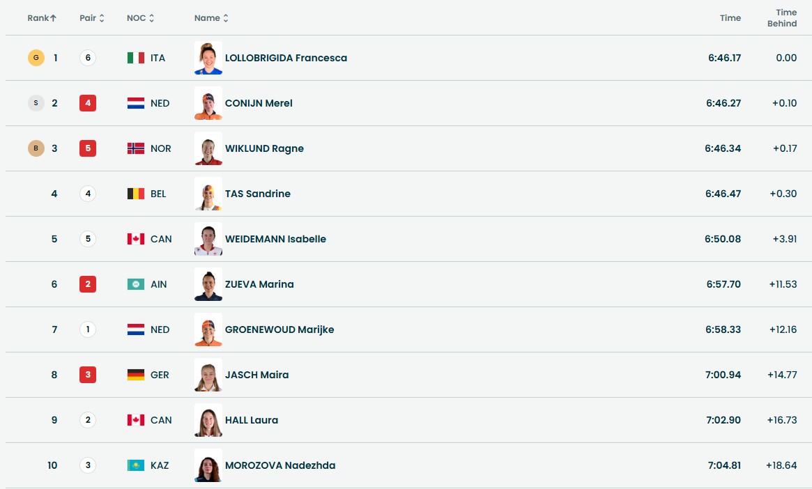 - Франческа Лоллобриджида (Италия), 2. Мерел Конейн (Нидерланды), 3. Рагне Виклунд (Норвегия).