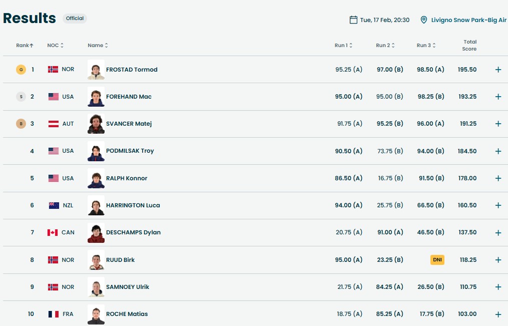 - Тормод Фростад (Норвегия), 2. Мак Форхенд (США), 3. Матей Шванцер (Австрия).