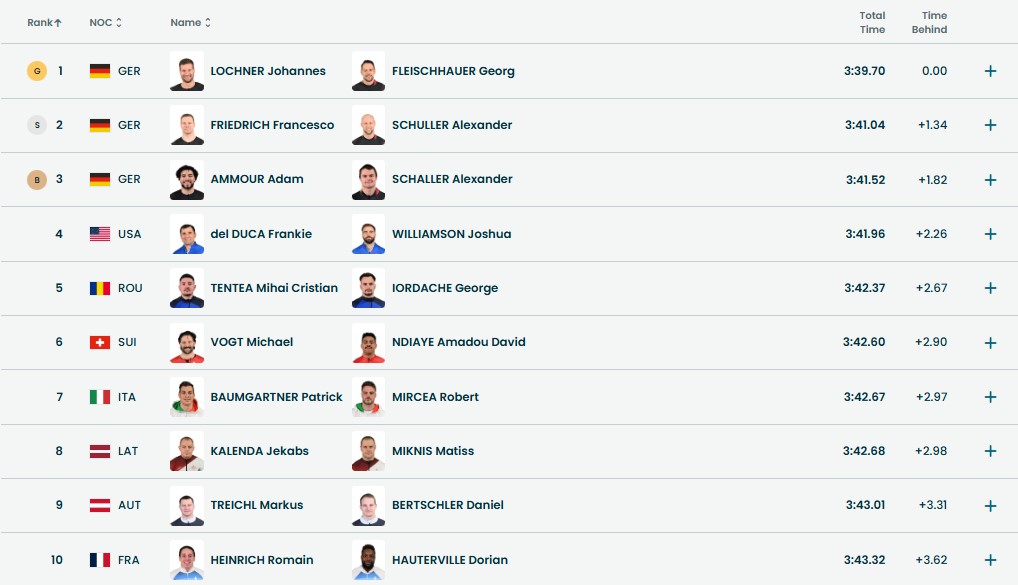 - Йоханнес Лохнер и Георг Фляйшхауэр (Германия), 2. Франческо Фридрих и Александер Шюллер (Германия), 3. Адам Аммоур и Александер Шаллер (Германия).