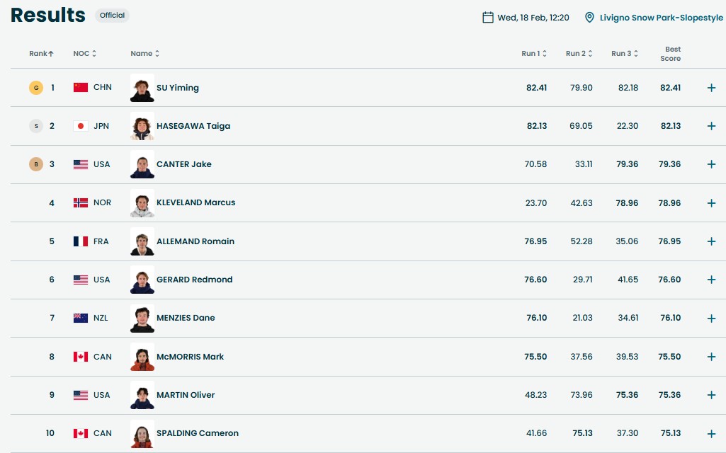 - Су Имин (Китай), 2. Тайга Хасегава (Япония), 3. Джейк Кантер (США).