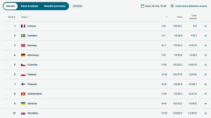 15:45. Биатлон. Женщины. Эстафета (4х6 км)