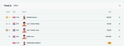 - Стивен Дюбуа (Канада), 2. Мелле ванет Ваут (Нидерланды), 3. Йенс ванет Ваут (Нидерланды)
