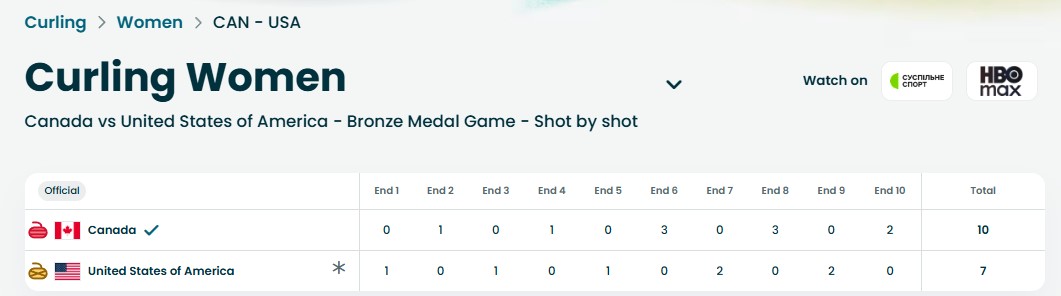 15:05 Керлинг. Женщины. Матч за 3-е место — Канада выиграла "бронзу".