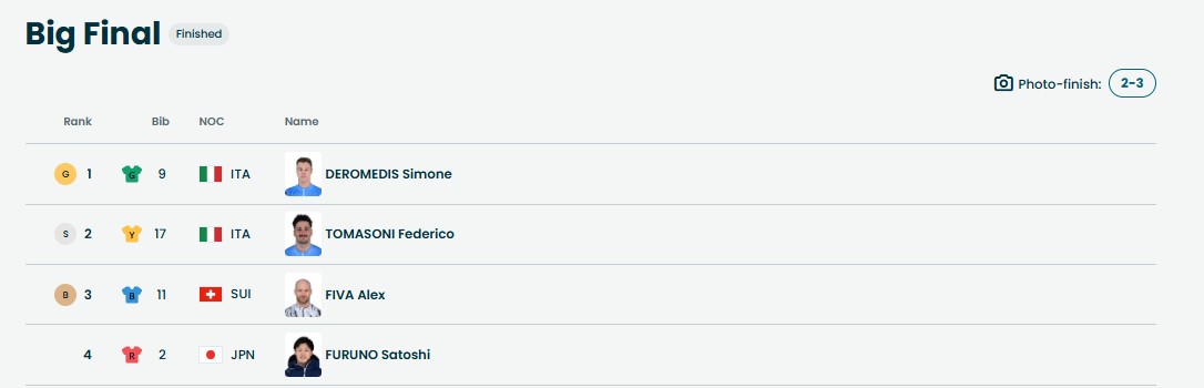 - Симоне Деромедис (Италия), 2. Федерико Томазони (Италия), 3. Алекс Фива (Швейцария).