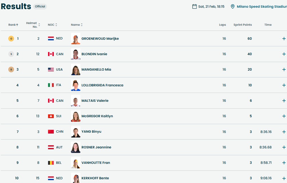 Результаты медальных соревнований на Олимпийских играх в Италии 21 февраля
