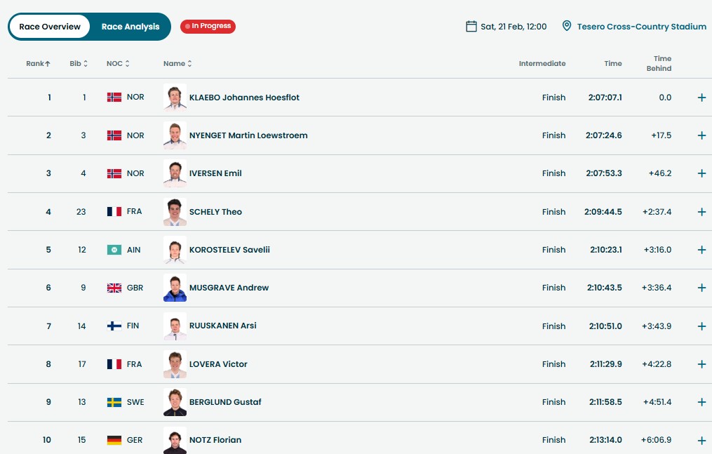 - Йоханнес Клебо (Норвегия), 2. Мартин Лёвстрём Нюэнгет (Норвегия), 3. Эмиль Иверсен (Норвегия).