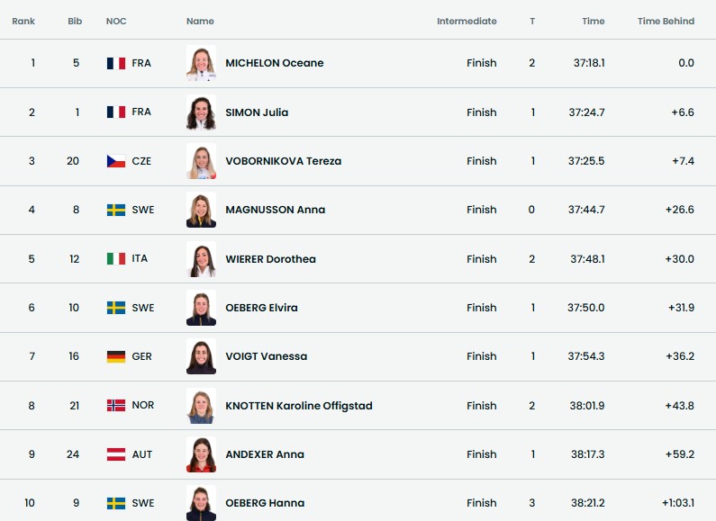 - Осеан Мишлон (Франция), 2. Жюлья Симон (Франция), 3. Тереза Воборникова (Чехия).