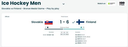 21:40. Хоккей. Мужчины. Матч за третье место выиграла Финляндия.