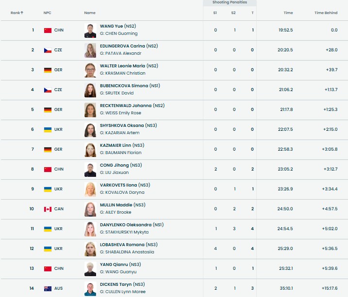 14:15 — 🥇Парабиатлон. Спринт, женщины (спортсменки с нарушениями зрения). Романа Лобашева заняла 12-е место, Илона Варковец — 9-е, Александра Даниленко — 11-е, Оксана Шишкова — 6-е.