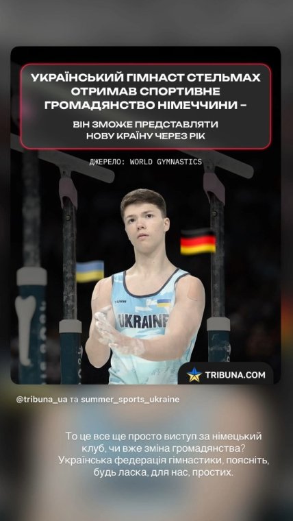 Украинский гимнаст Радомир Стельмах сменил спортивное гражданство на немецкое. Он сможет выступать за Германию с марта 2027 года.