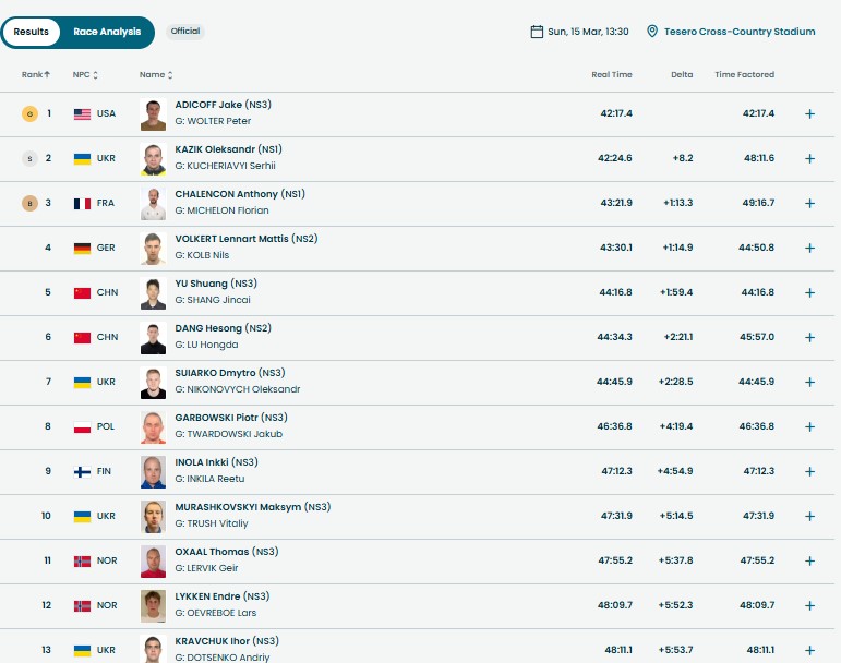 Таким образом, 29-летний Казик на Паралимпиаде-2026 выиграл свою третью медаль. Ранее он завоевал 2 награды в биатлоне: "золото" в спринте и "серебро" в спринт персьюте.