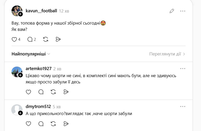 В сети также недовольны подобным сочетанием. Пользователи шутят, что синие шорты и гетры просто "потеряли".