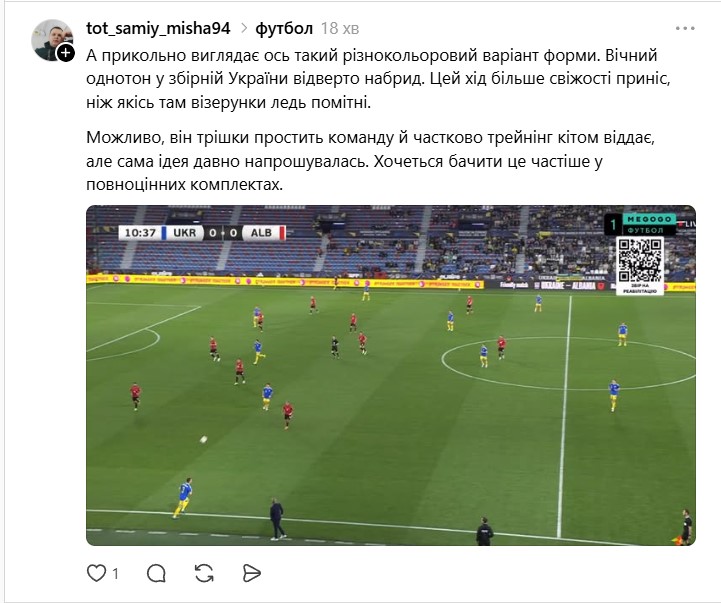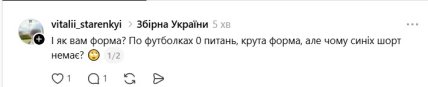 Известный блогер, соведущий шоу "ТаТоТаке" Михаил Смоловой раскритиковал форму сборной Украины. Дело в том, что гостевая экипировка украинского сборника состоит из синей футболки и желтых шорт и гетр, которые являются частью "домашнего" комплекта.
