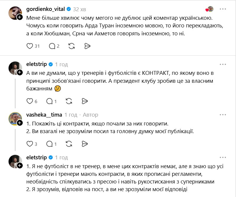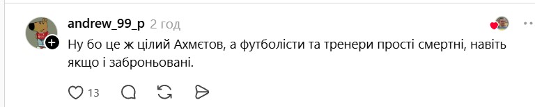 После игры официальный транслятор встречи Megogo взял интервью у Ахметова. Все бы ничего, но функционер говорил на русском языке, из-за чего возникли споры в сети. В Threads задали риторический вопрос медиа-платформе, почему никто не сделал замечание миллиардеру.
