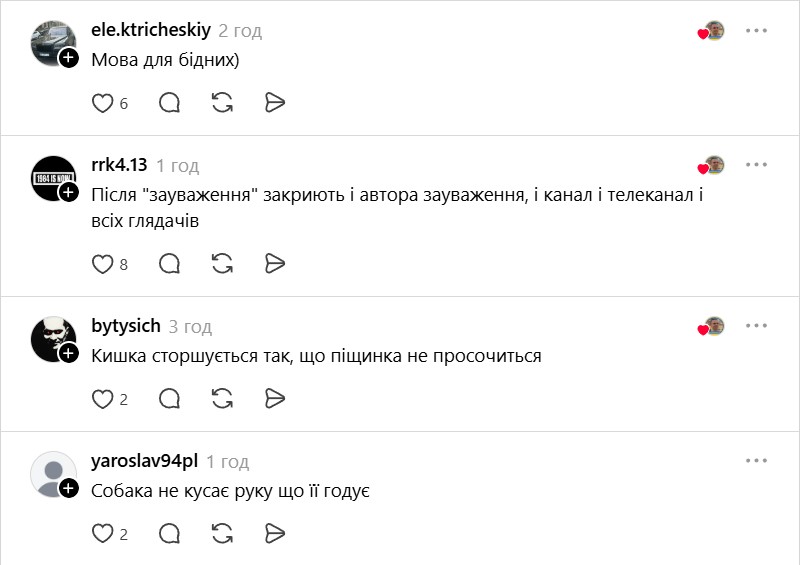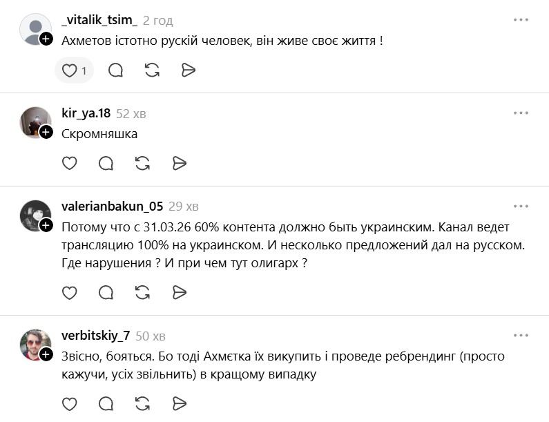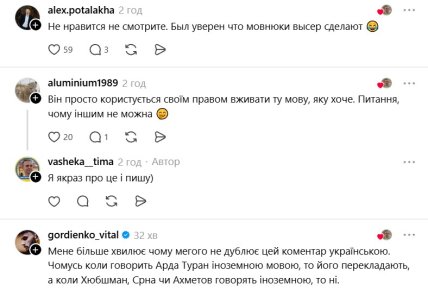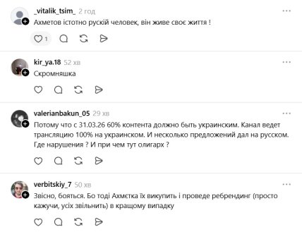 Тем не менее часть пользователей раскритиковала Ахметова и вещателя за использование языка страны-агрессора. Один из них написал, что "мова для бедных".