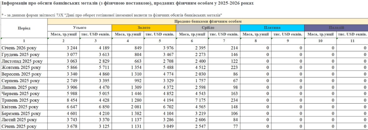 Про це можна зробити висновок з нового звіту Нацбанку з продажу населенню металів з фізичним постачанням (передачею людині на руки відповідного зливка) з січня 2025 по січень 2026-го. Так, за даними регулятора, українці знову не хотіли ризикувати і натомість вкладалися у звичне – долар та депозити. І, схоже, дарма. Адже таким чином, ймовірно, було втрачено одну з найкращих можливостей заробити за останні роки.