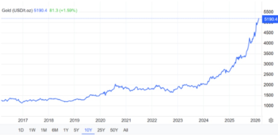 Ціни на цей вид дорогоцінних металів всього за рік злетіли майже в 2,9 рази — з 1430 до 4152 доларів. Наприкінці лютого 2026-го котирування взагалі доходили до 5190 доларів. Це сталося через різкі рішення США, включаючи торгові конфлікти та геополітичні ризики. Загалом відбувся класичний сценарій — більше нестабільності — дорожче за золото.