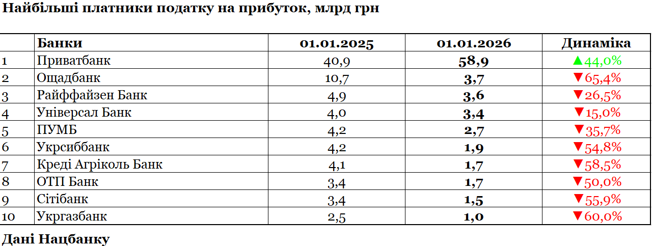 1. Сенс Банк (заробив за підсумком 2025 року 3,2 млрд грн чистого прибутку);