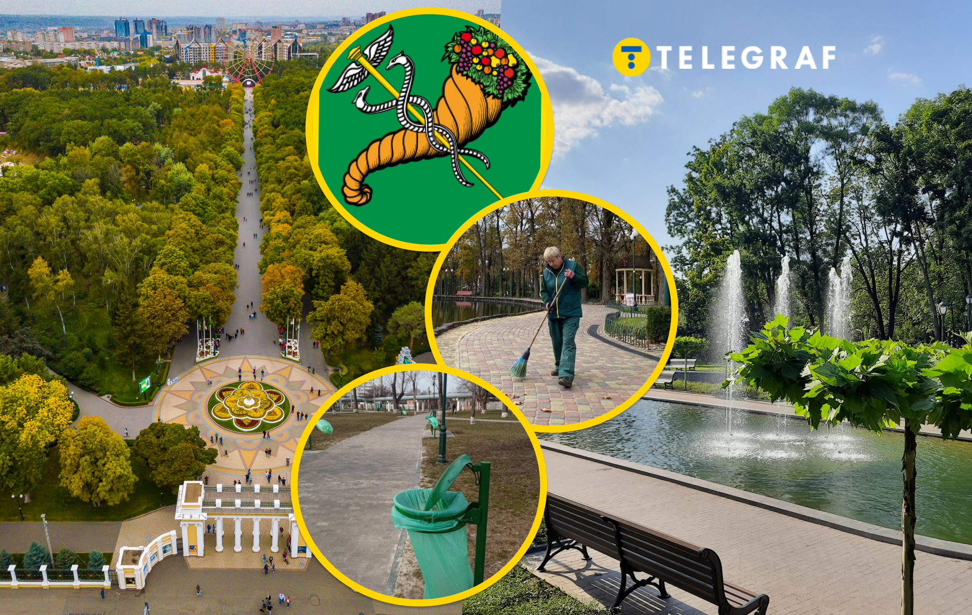 До цього додаються й інші деталі: фон герба Харкова має зелений колір. Крім того, форма працівників, які доглядають за парками, та сміттєві пакети в урнах міста часто теж мають такий колір. Разом це формує стійку асоціацію, тому Харків для багатьох – це місто зелених паркових зон і свіжості.