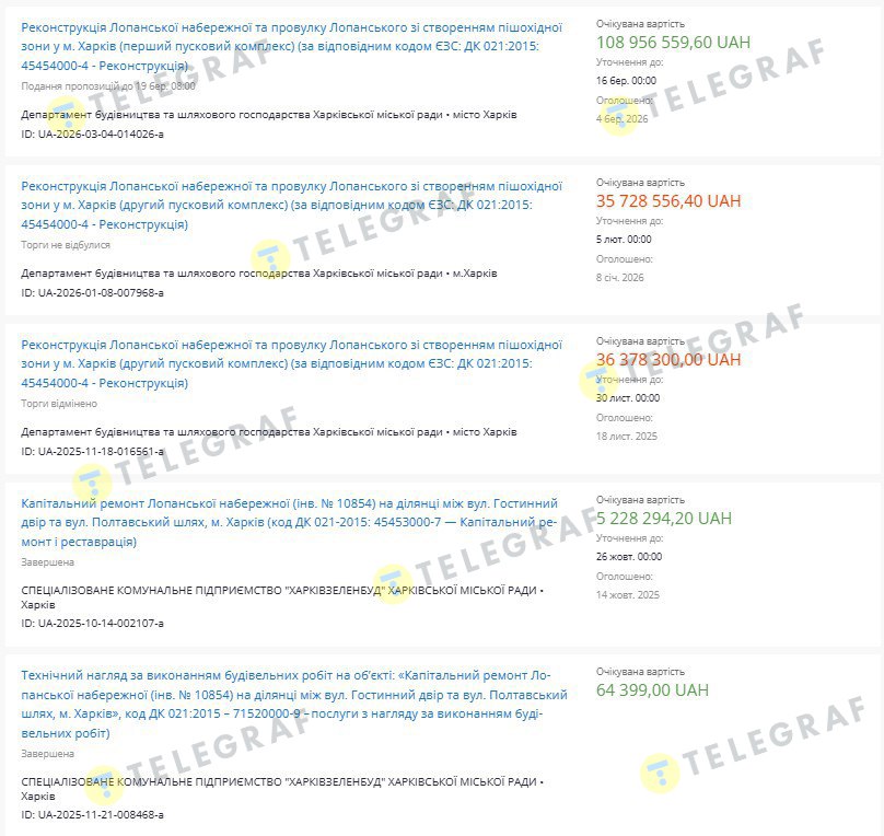 - Друга пов’язана безпосередньо з капітальним ремонтом на ділянці Лопанської набережної (між вул. Гостинний двір та вул. Полтавський шлях), який оцінили лише в 5,2 млн грн.