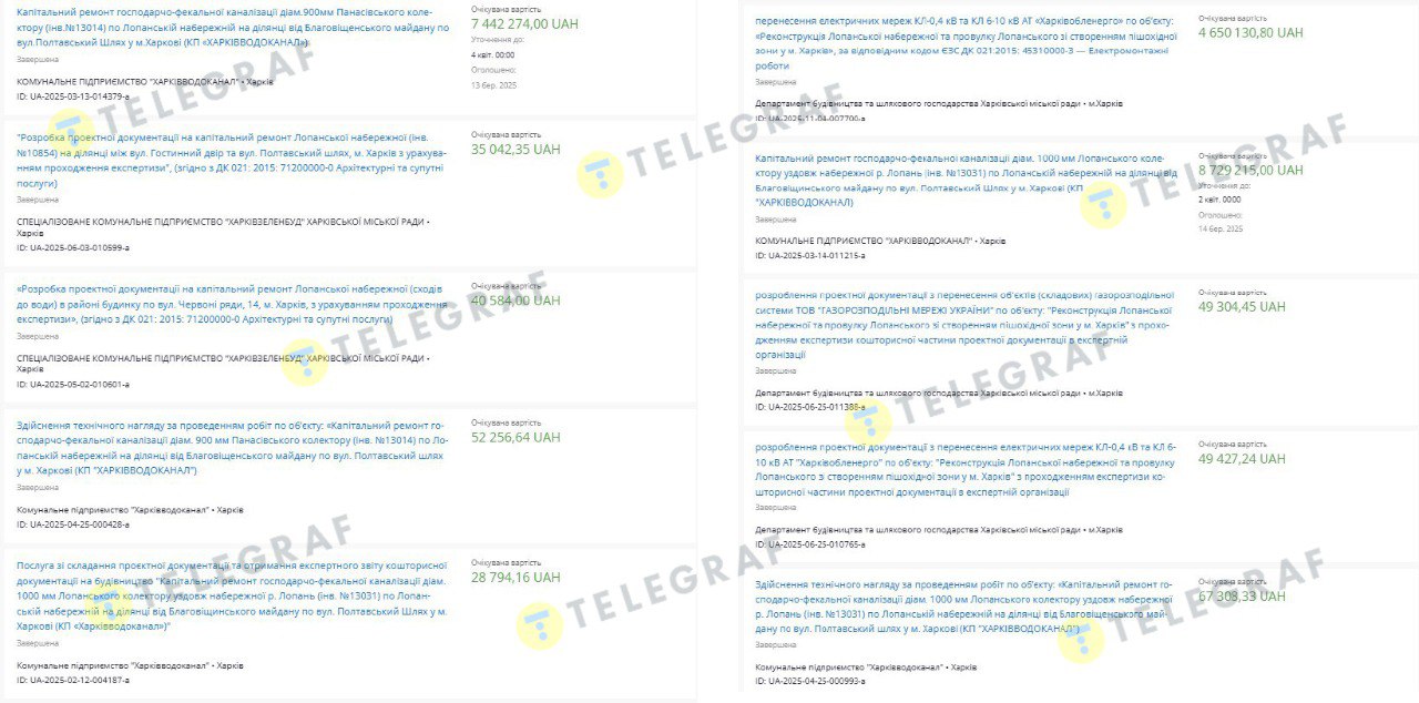 Фактично роботи на Лопанській набережній почалися влітку 2025 року – це фіксували харківські журналісти. При цьому на той момент відбулись лише тендери на ремонт господарчо-фекальної каналізації двох колекторів, що проходили в цьому районі. На ці об’єкти, що загалом коштували бюджету 13,7 млн грн, залучили ТОВ "Компанія Тарвос".