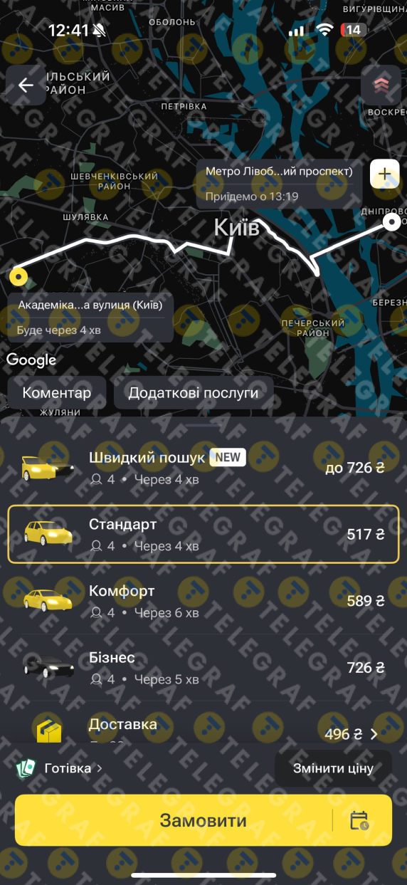 Скільки коштує дістатися на таксі з правого на лівий берег у Києві
