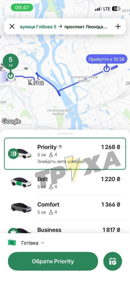 Станом на 12:30, дістатись з правого на лівий берег доведеться заплатити значно дешевше. Ціни варіюються від 500 до 700 грн.