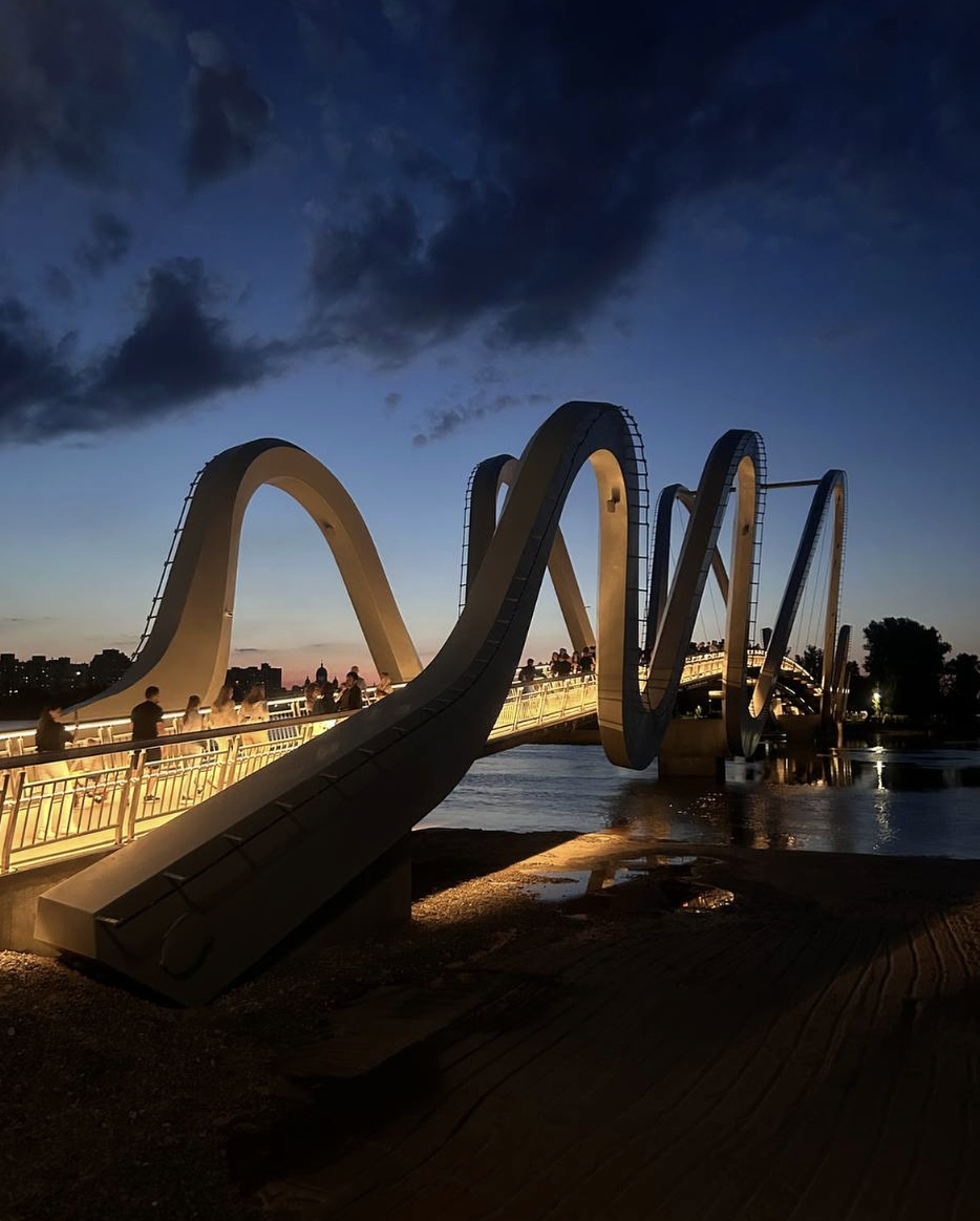 В Україні є чимало унікальних архітектурних споруд мостів, до яких належить й міст-хвиля в Києві. Його відкрили у 2024 році, і за цей час він став досить популярним.