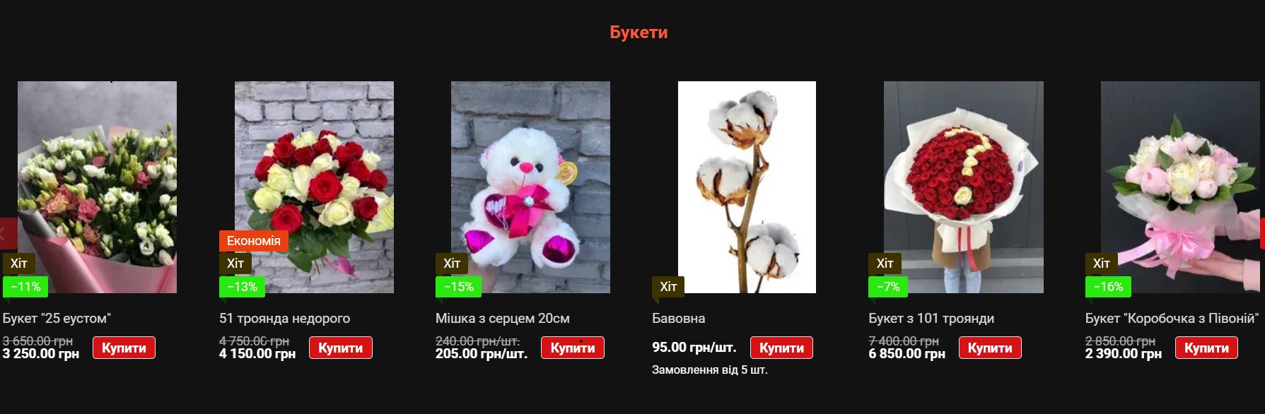 Окрім традиційних квіткових точок, мережі супермаркетів також пропонують квіти до свята. У великих торговельних мережах типу "Сільпо", "АТБ" або "Novus" можна знайти готові букети за ціною від 400 до 800 гривень. Це бюджетні варіанти без вишуканого оформлення, але для швидкої покупки цілком підходять. Звичайно, вибір там обмежений, а свіжість квітів може бути під питанням.