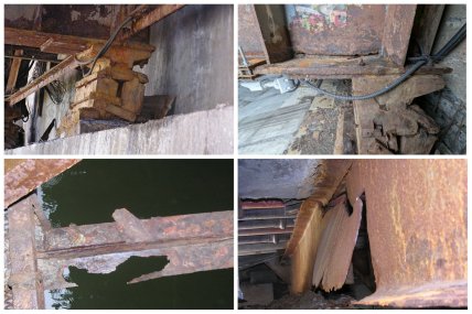 Корозія серйозно витончила метал — на окремих ділянках товщина конструкцій зменшилася приблизно з 14 до 7 мм, а до 2025 року в головних балках з'явилися наскрізні отвори.