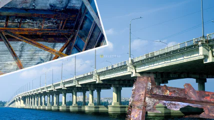 Наприклад, стінки головних балок на 2025 рік мають наскрізні пошкодження. Тобто через іржу в цих елементах утворились дірки або прориви, що проходить через всю товщину металу. Критичного руйнування через корозію зазнали поперечні балки, а залізобетонну плиту проїзної частини "рве" арматура, уражена іржею. Плюс значна частина горизонтальних в’язей (з’єднувальних елементів) моста мають розриви.