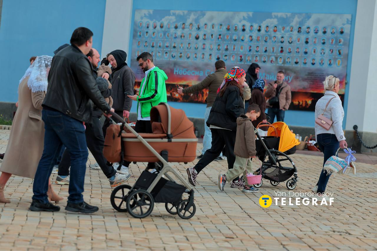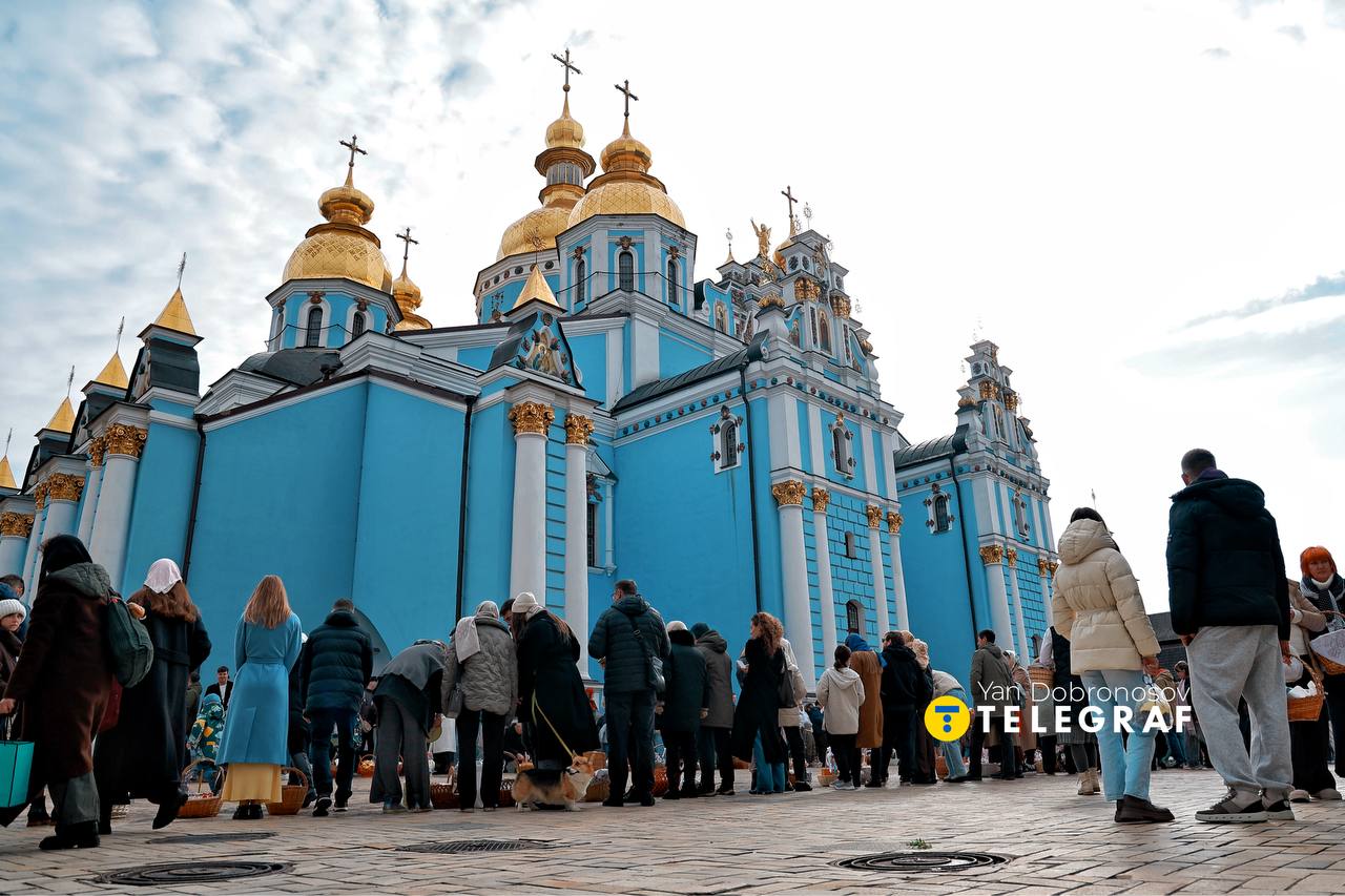 Вранці 12 квітня у самому центрі Києва біля стін Михайлівського Золотоверхого монастиря з нагоди світлого свята Великодня зібралася велика кількість людей. Багато хто прийшов з дітьми, батьками, близькими, щоб освятити свої великодні кошики.