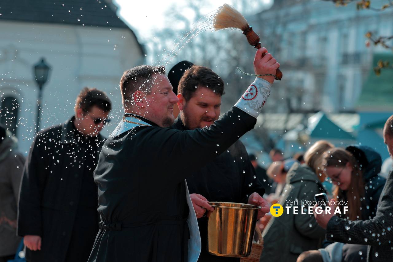 Через деякий час до киян вийшли священники та окропили кошики святою водою. Водночас вони привітали людей зі святом та промовили молитви.