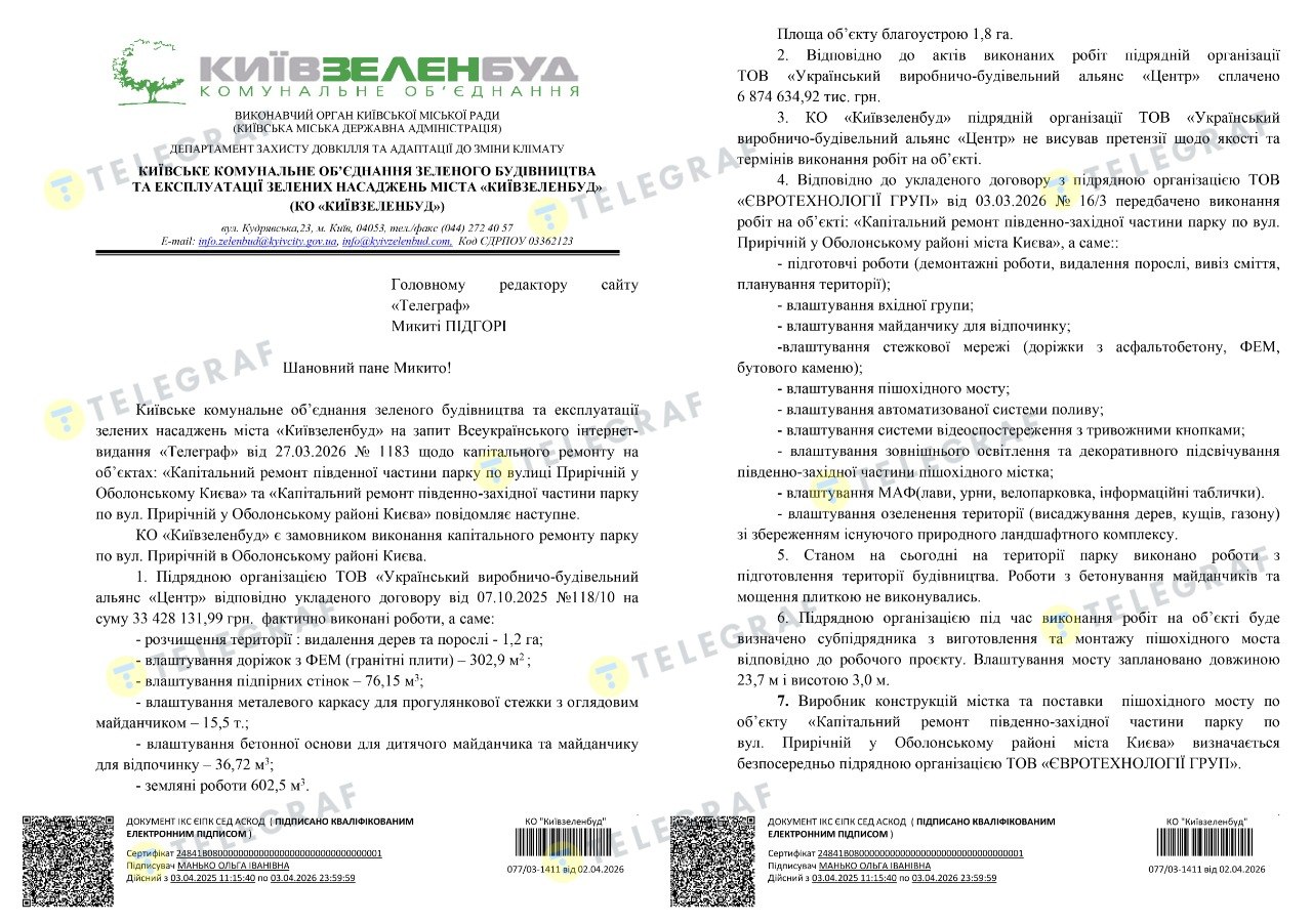 "Телеграф" отримав ексклюзивні відповіді від "Київзеленбуду" та профільних департаментів КМДА, які проливають світло на математику проєкту.