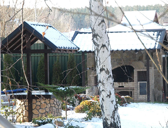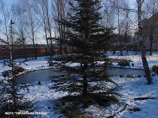 Територія навколо будинку виглядала доглянутою: газон був акуратно підстрижений, навколо були декоративні кущі, квіти, ялини та берези.