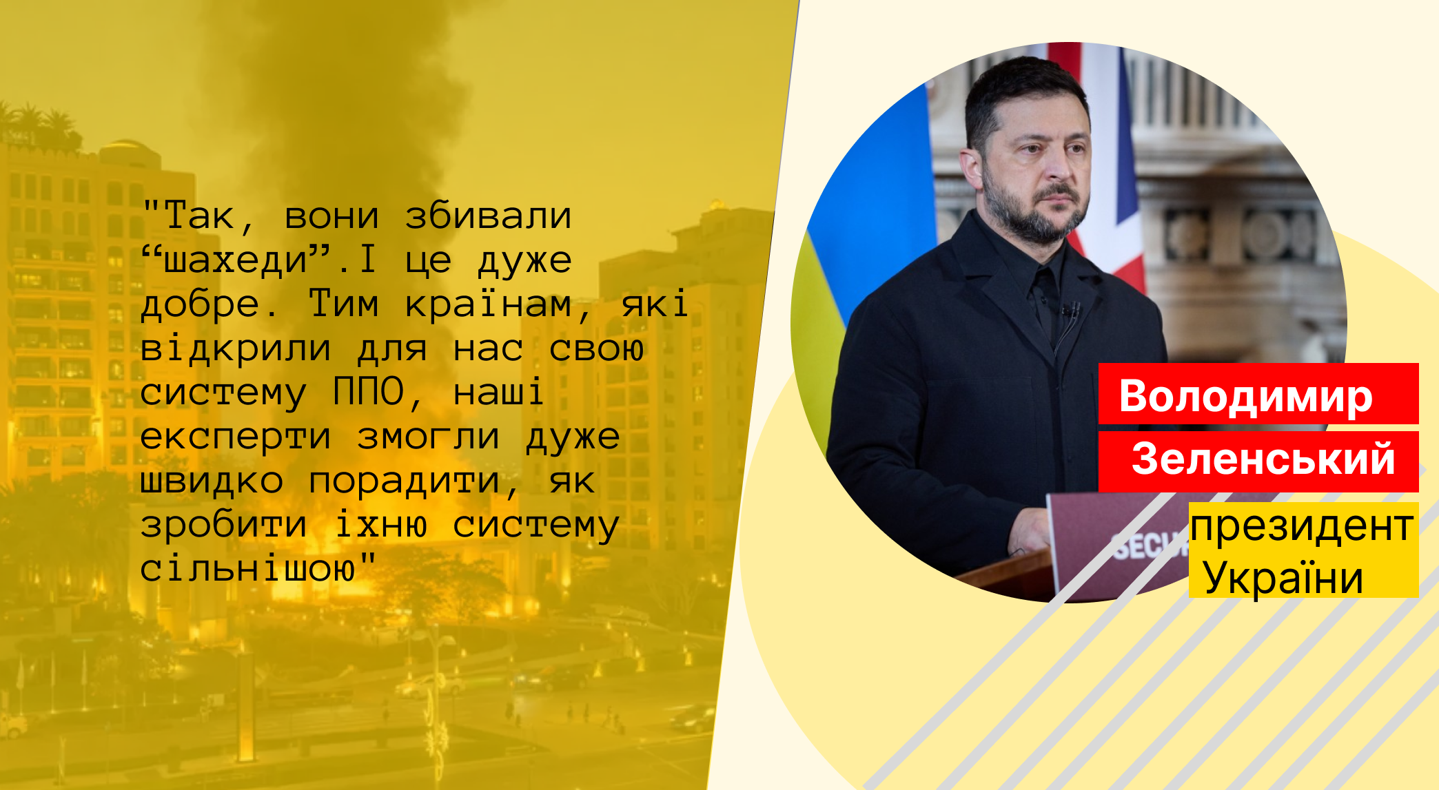"Деяким країнам ми демонстрували, як працювати з перехоплювачами. Чи знищували ми? Так, знищували. Чи знищували ми в одній країні? Ні, в кількох. І це, на мою думку, успіх", – зазначив Зеленський.