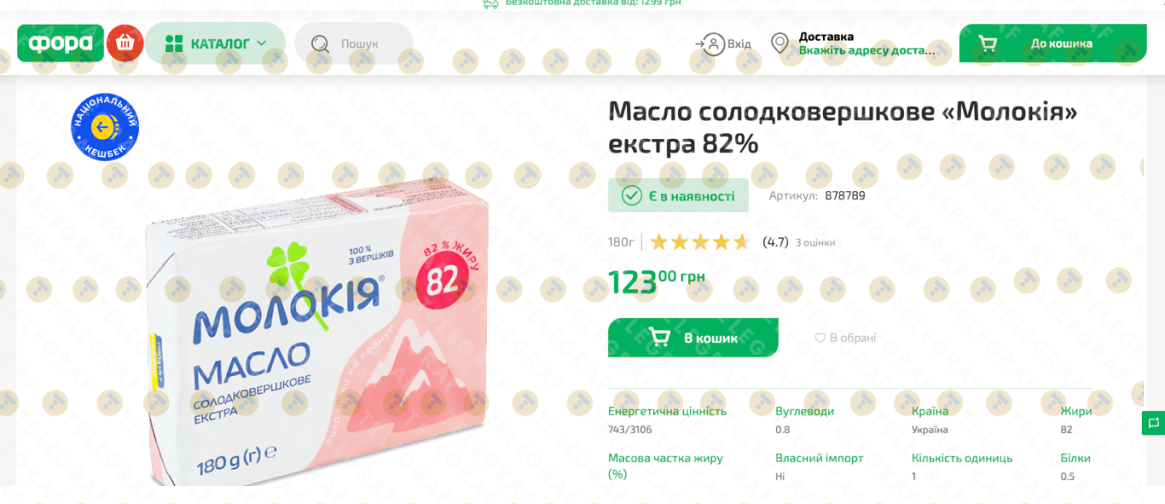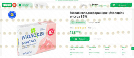 Водночас у мережі "Фора" за аналогічну пачку масла покупцям доведеться заплатити 123,00 грн, що на 48,01 грн дорожче, ніж в акційній пропозиції.