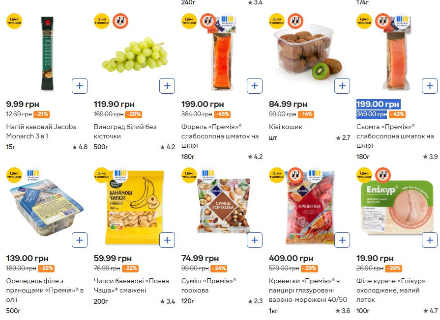 - Форель Премія – 199 гривень замість 349 (знижка 45%)