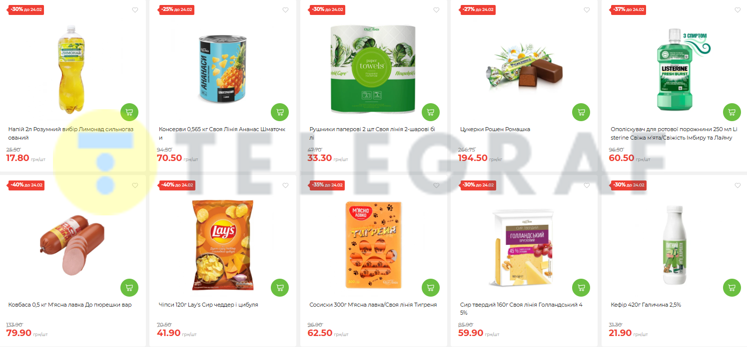 • Акційні ціни поширюються від солодощів та молочної продукції до засобів гігієни
