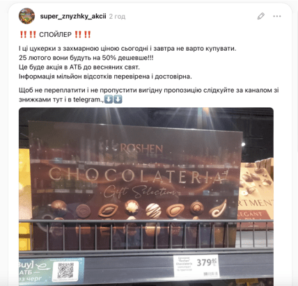 Наразі ціна на цей товар у магазинах та на сайті становить близько 373,90 грн. Проте, за словами очевидців, варто зачекати до 25 лютого, коли стартує велика акція до весняних свят.
