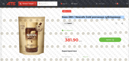"Телеграф" розповість, скільки коштує товар. Йдеться про розчинну сублімовану каву Nescafe Gold у великому економ-пакуванні вагою 280 грамів.