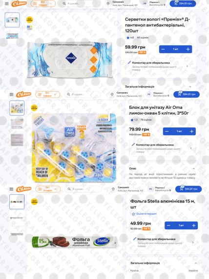 - Блок для унітазу Air Oma (3*50 г) — набір для чистоти оселі коштує 79.99 грн при старій ціні 149 грн (-46%).